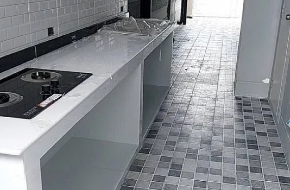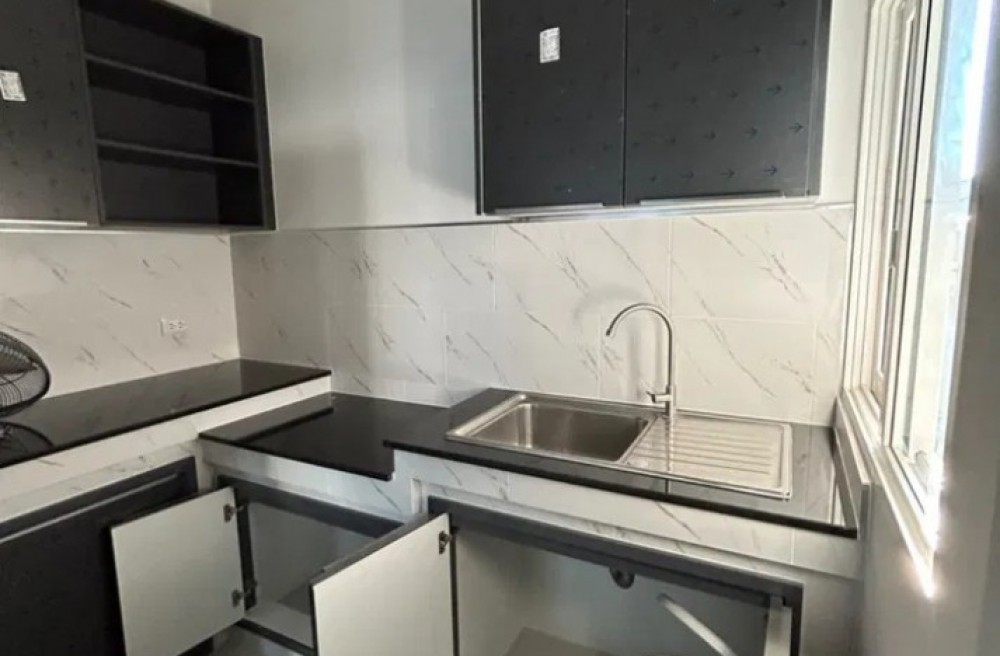 - ยังไม่เคยเข้าอยู่ เทพื้นหลังบ้านปูกระเบื้อง พร้อมก่อเค้าเตอร์ครัวไทยปูท็อปหิน และกระเบื้อง