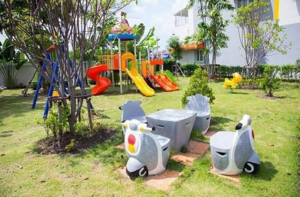 ส่วนกลางมีสระว่ายน้ำ ฟิตเนส สวนเด็กเล่น