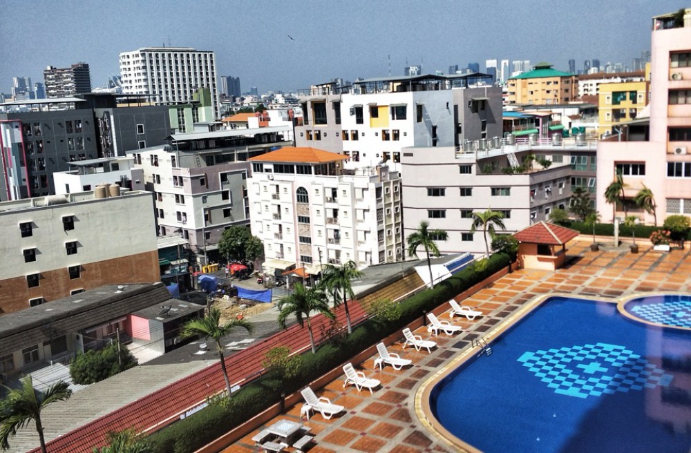 จุดเด่นของห้อง: สตูดิโอห้องหัวมุมขนาดใหญ่ 40 ตร.ม. ชั้น 9 สะอาด สวย แสงดี มีหน้าต่างเพิ่ม เห็นทั้งวิวสระว่ายน้ำและวิวเมือง ห้องน้ำแบบ Shower Box