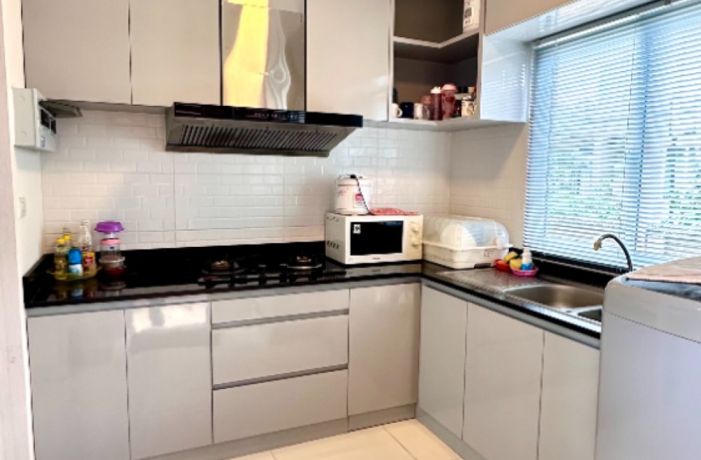 - Built-In ชุดครัว พร้อมเตาเเก็ส 2 หัว, ที่ดูดควัน, ,ที่ล้างจาน, ที่วางของปูด้วยหินอ่อนอย่างดี