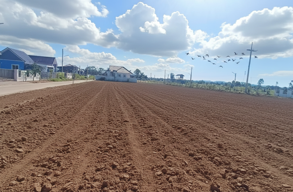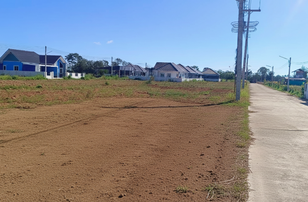 พร้อมด้วย ไฟฟ้า น้ำประปา ท่อระบายน้ำ ถนนคอนกรีต สร้างบ้านอยู๋ได้เลย