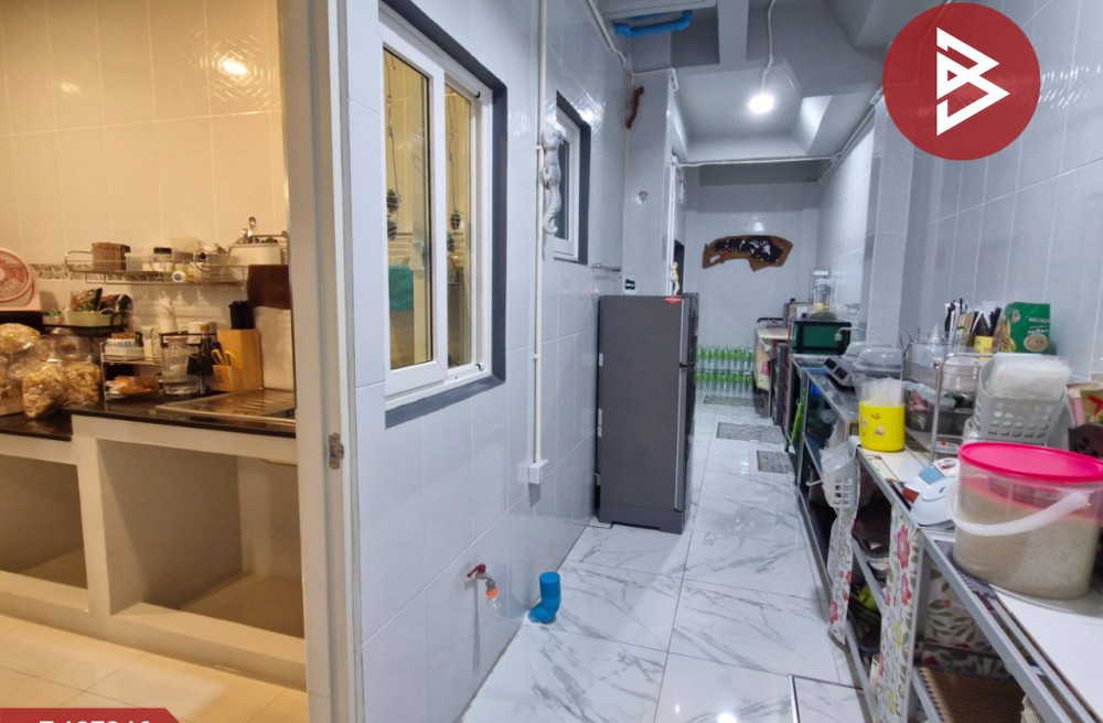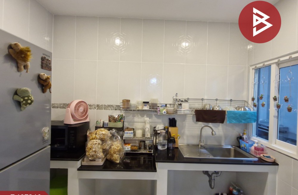หลังบ้านต่อเติมหลังคาเทปูนทำผนังอย่างดี รอบตัวบ้าน ห้องครัวปูกระเบื้องพื้น–ผนังใหม่ทั้งชุด