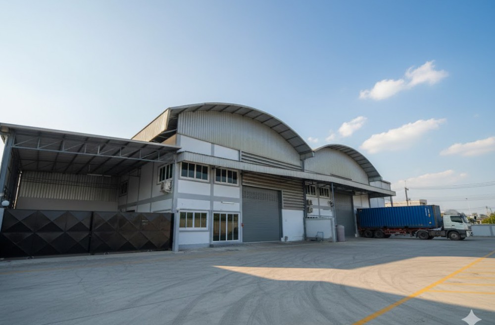 ขาย / ให้เช่า โกดัง–โรงงาน 1,090 ตร.ม. คลองมะเดื่อ กระทุ่มแบน สมุทรสาคร ไฟฟ้า 3 เฟส | หันหน้าทิศใต้ | ขอ อย. ได้ | ขอ รง.4 ได้บางประเภท | ราคาไม่แรง