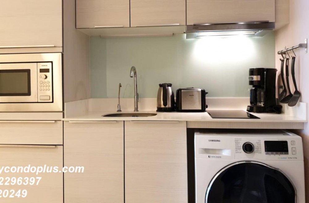 รายการเฟอร์นิเจอร์และเครื่องใช้ไฟฟ้า : ชุดเคาน์เตอร์ครัว Build-in, เตาไฟฟ้า 2 หัว, เครื่องดูดควัน (Siemens), ไมโครเวฟ (Siemens), ตู้เย็น ขนาดใหญ่ (สีดำ/สแตนเลส), เครื่องซักผ้า/อบผ้า (ฝาหน้า Samsung), กาต้มน้ำ, เครื่องชงกาแฟ, เครื่องปิ้งขนมปัง, อุปกรณ์ครัวแขวนผนัง