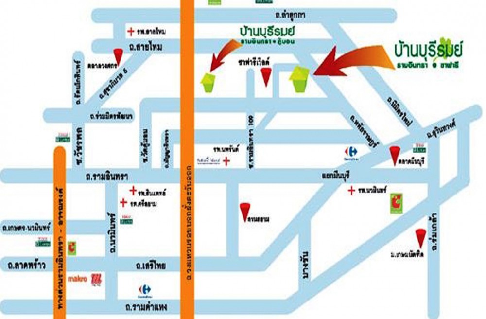 การเดินทาง เริ่มจาก ถนนเลียบคลองสอง หน้าปากซอย เลียบคลองสอง 11 > เลี้ยวซ้ายเข้าสู่ ถนนปัญญาอินทรา > บ้านบุรีรมย์ รามอินทรา-ซาฟารี *โครงการอยู่ระหว่าง ซอยเลียบคลองสอง 21-25