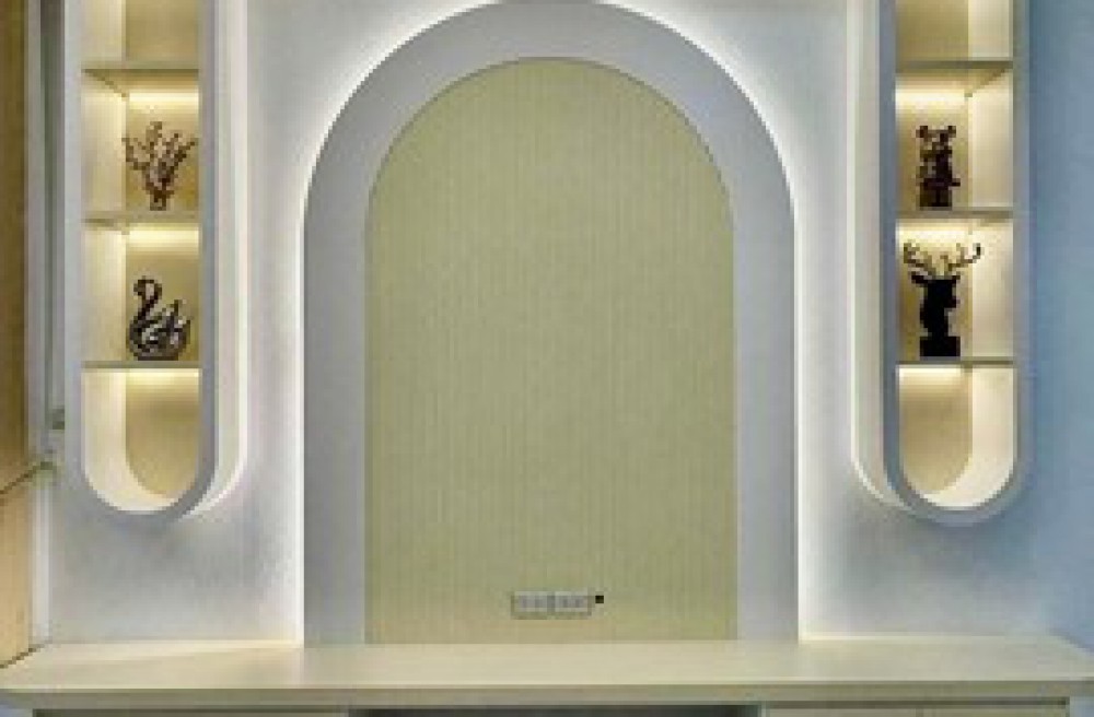Built-in TV cabinet in the living room, kitchen, and bedrooms