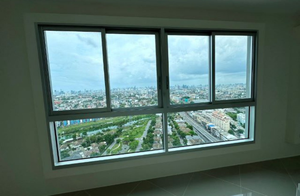 คอนโดห้องใหญ่ 2 ห้องนอน 2 ห้องน้ำ 1 ห้องรับแขก 1 ห้องครัว วิวสูงชั้น 28 มีที่จอดรถ คอนโดติดริมถนนสี่แยกพัฒนาการ ใกล้ซุปเปอร์ ใกล้สถานี BTS สีเหลืองสถานีหัวหมาก