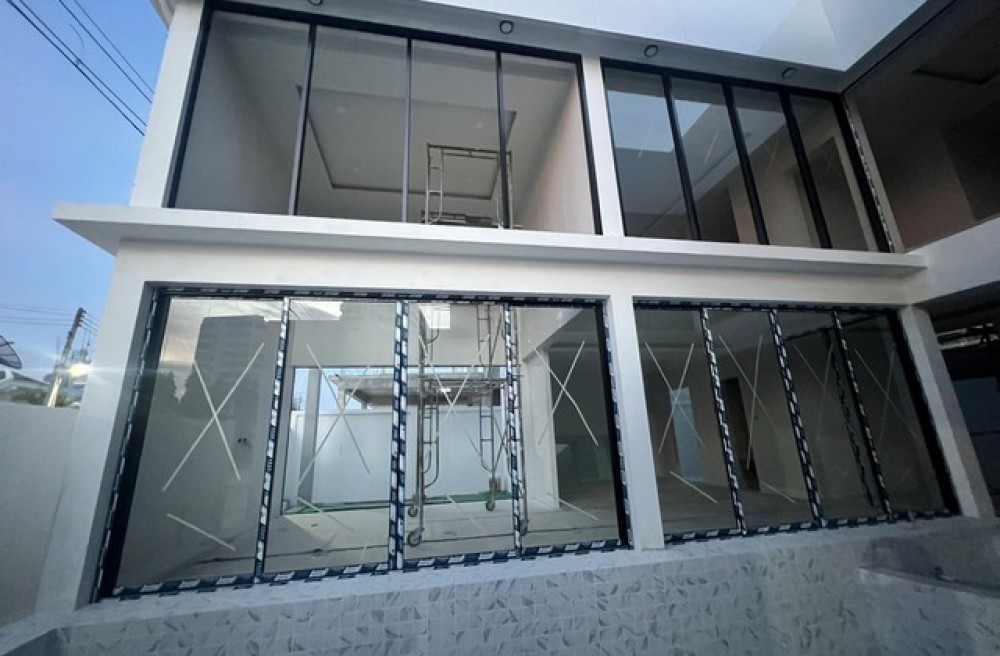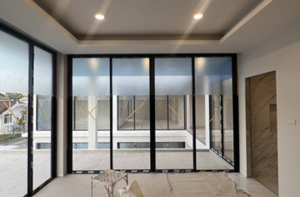 กระจกใส ใช้อะลูมิเนียมแบบหนา เกรด A เรียบร้อยแล้วเตรียมเริ่มงานบิวอินน์