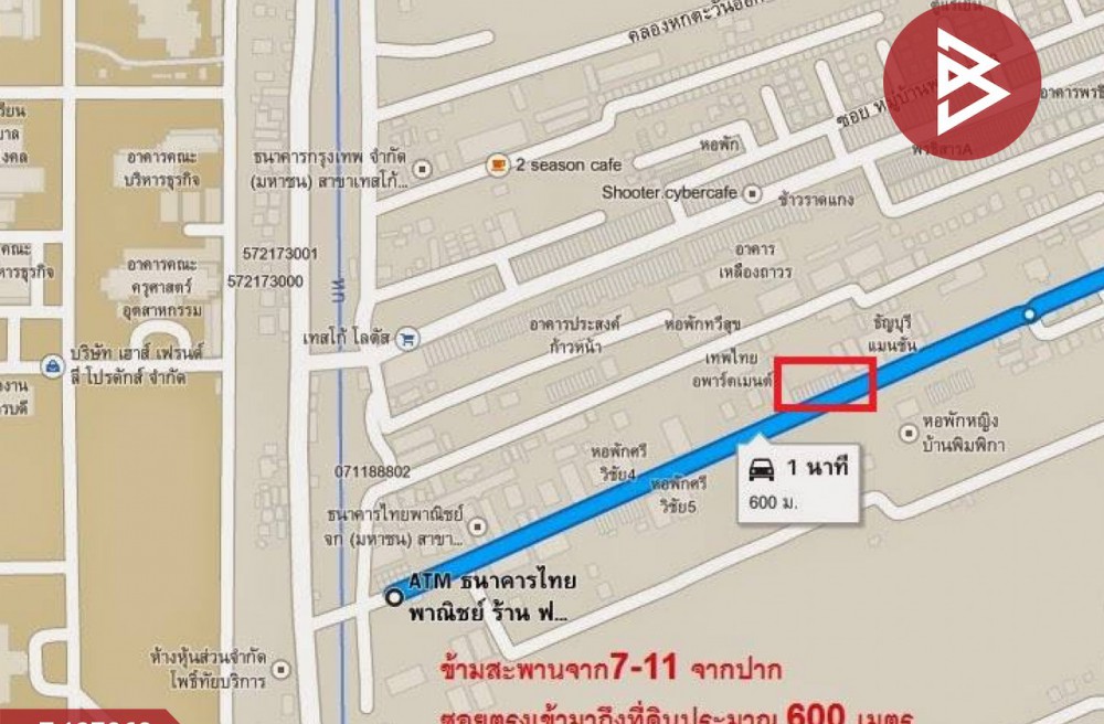 รายละเอียดเพิ่มเติม : ขายที่ดิน พร้อมสิ่งปลูกสร้าง ใกล้กับหอพักตรงข้าม ราชมงคลคลอง 6 มีทั้งหมด 10 ห้อง