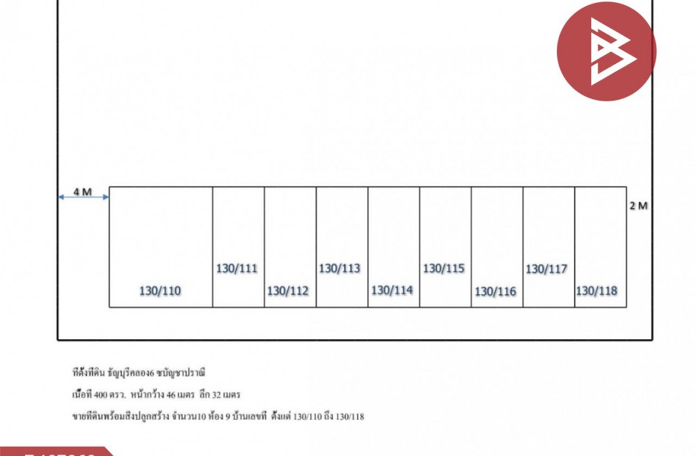 ที่ดินทั้งผืนหน้ากว้าง 46 ม ลึก 32 ม.