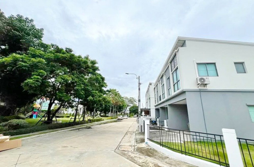Chaengwattana WatSaphanSung Tops Chaiyaphruek 1.7km. Luxury 2-story townhouse for rent-sale corner unit 224 sq.m. 28sq.wa. 5.9 million baht. Brand new furnished 3 bed 2 bath 300 m. from Singapore International School (SISB). With a spacious lawn 25,999B-M. Ideal for a home office or residence. Phuang Sawang Market 345 2.2km. Easy access MRT PakKret 4km.