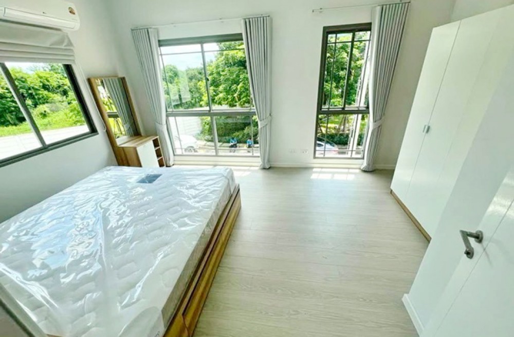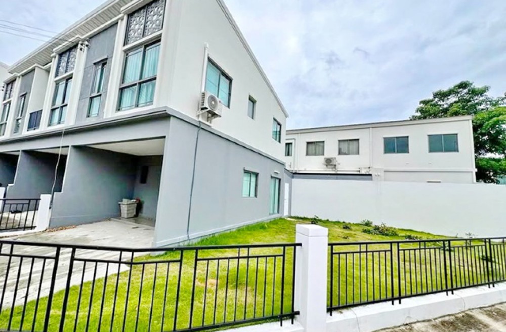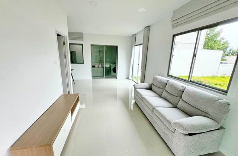 300 m. from Singapore International School (SISB). Chaengwattana WatSaphanSung Tops Chaiyaphruek 1.7km. Luxury 2-story townhouse for rent-sale corner unit 224 sq.m. 28sq.wa. 5.9 million baht. Brand new furnished 3 bed 2 bath With a spacious lawn 25,998B-M. Ideal for a home office or residence. Phuang Sawang Market 345 2.2km. Easy access MRT PakKret 4km.