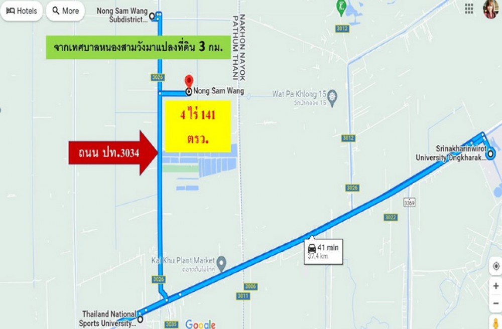 ขายที่ดิน หนองเสือ คลอง13 ฝั่งตะวันตก ถนนรังสิต-นครนายก ตำบลหนองสามวัง อำเภอหนองเสือ ปทุมธานี รายละเอียดทรัพย์ – ที่ดินเปล่า เนื้อที่ 4-1-41 ไร่ หน้ากว้าง 95 x 73.50 เมตร – ไฟฟ้าประปาเข้าถึงที่ดิน แปลงที่ดินห่างจากเทศบาลหนองสามวัง 2 กม. – เหมาะสร้างโรงงานขนาดย่อม ที่อยู่อาศัย คลังสินค้า หรือซื้อเพื่อการลงทุนในอนาคต – ตารางวาละ 1,750 บาท ไร่ละ 7 แสนบาท สถานที่ใกล้เคียง – ม.นานาชาติเซนต์เทเรซา, ม.ศรีนครินทรวิโรฒวิทยาเขตองครักษ์ – รพ.ส่งเสริมสุขภาพหนองสามวัง 1 และ2 – เทศบาลตำบลหนองสามวัง การเดินทาง – ตั้งบน ถ.รังสิต-นครนายก – เชื่อมต่อ ถ.ลำลูกกา, ถ.ทางหลวงชนบท 3034, ถ.พหลโยธิน, ถ.ฉลองกรุง