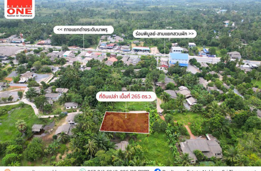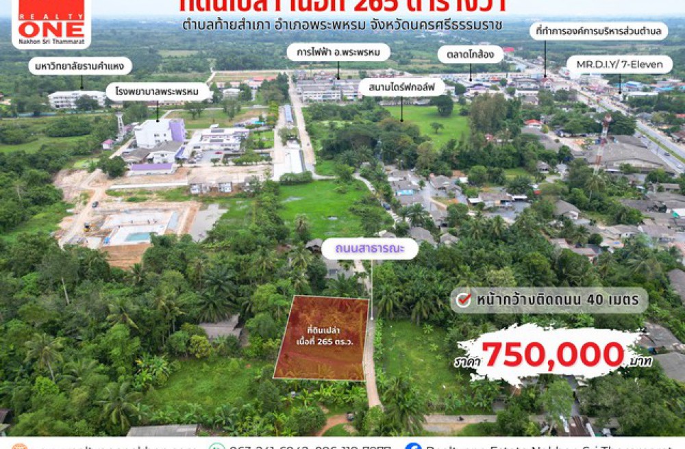 พระพรหม , จังหวัดนครศรีธรรมราชที่ดินแปลงสวย เนื้อที่ 265 ตารางวา หน้ากว้างติดถนน 40 เมตร