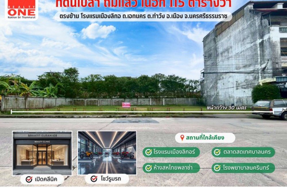หน้ากว้าง 30 เมตร มองเห็นชัด เหมาะพัฒนาทำธุรกิจได้หลายรูปแบบ