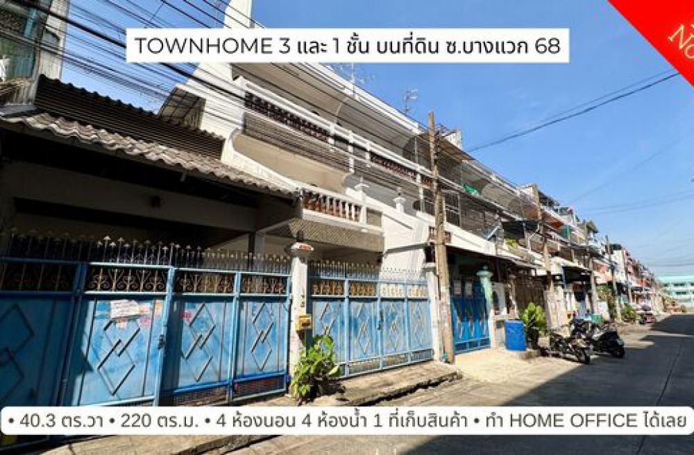 เขตภาษีเจริญ , จังหวัดกรุงเทพมหานครขายทาวน์โฮม 3 ชั้น และ 1 ชั้น บนที่ดิน 40.3 ตารางวา บางแวก 68 พร้อมทำ home office และ store เก็บสินค้าหรือห้องนอนชั้นล่างได้ทันที คุ้มค่าการลงทุน