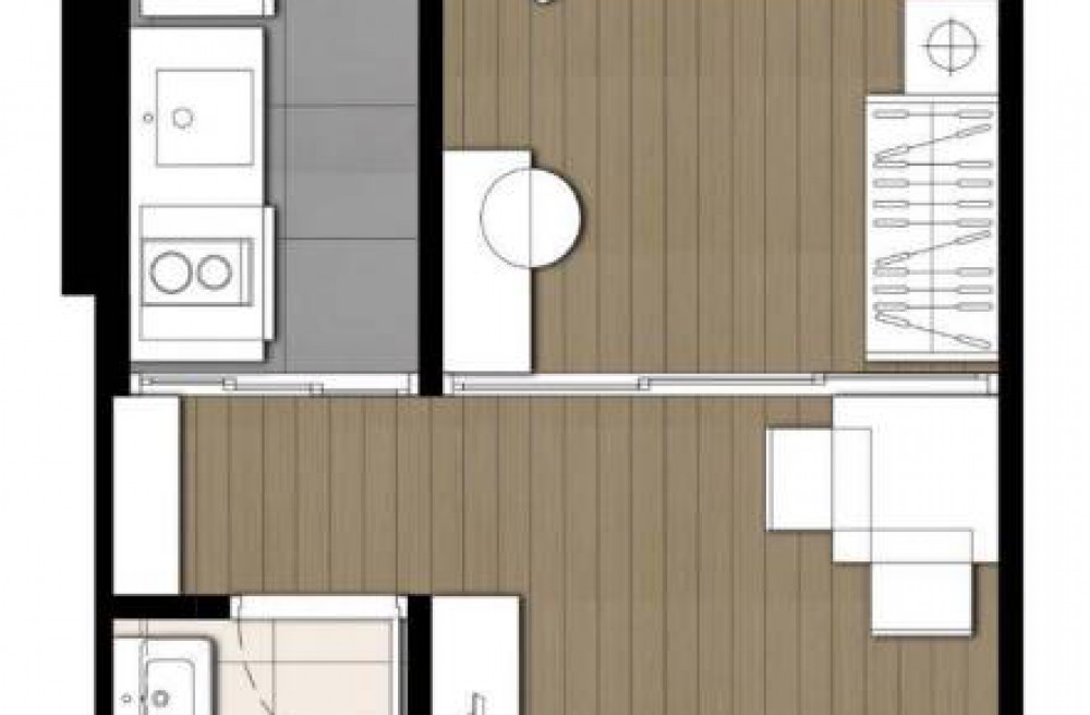 - 1 ห้องนอน 1 ห้องน้ำ ห้องนั่งเล่น 1 ห้องครัว