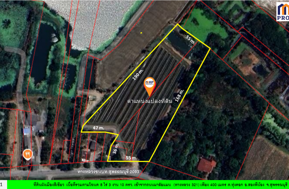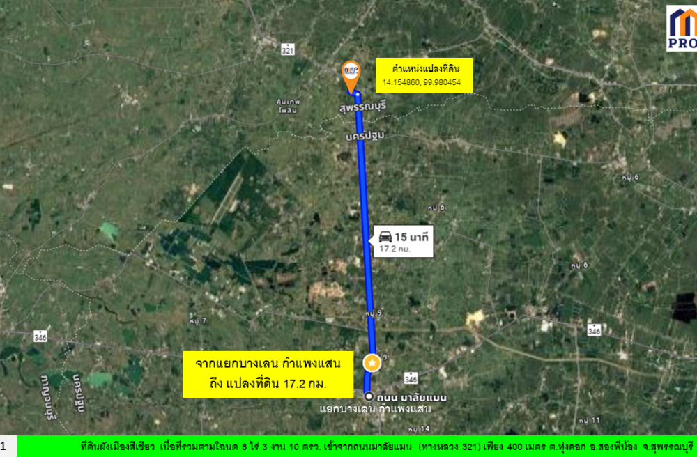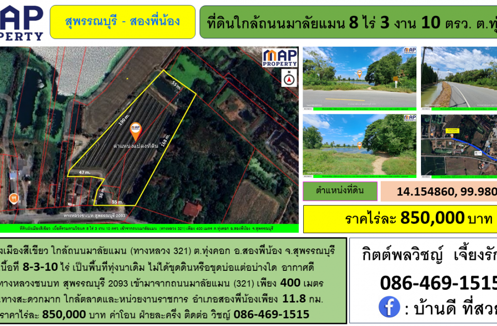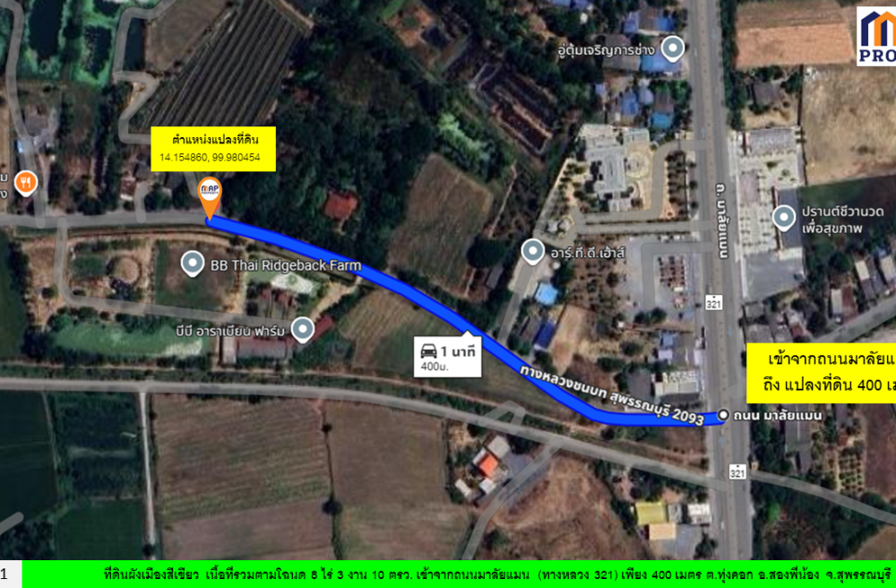 -ติดทางหลวงชนบท สุพรรณบุรี 2093 เข้ามาจากถนนมาลัยแมน (321) เพียง 400 เมตร