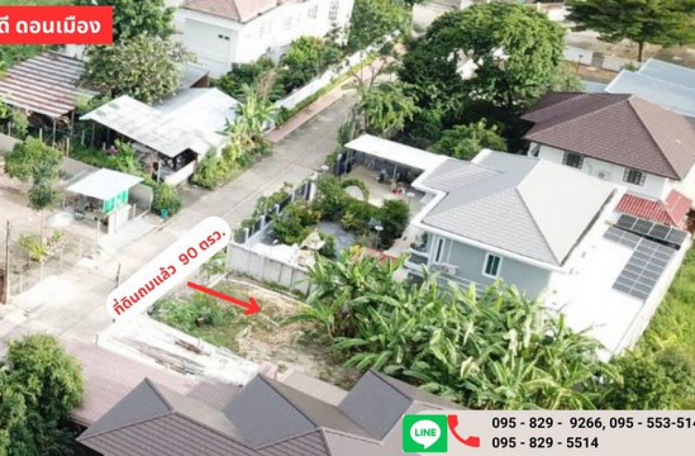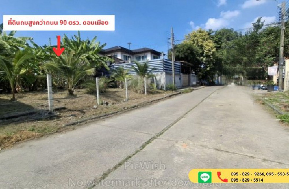 เขตดอนเมือง , จังหวัดกรุงเทพมหานครขายที่ดินถมแล้วสูงกว่าถนน 90 ตรว. ดอนเมือง ซอยเทิดราชัน3 ถนนเทิดราชัน กรุงเทพมหานคร เหมาะสร้างบ้านพักอาศัย สำนักงานออฟฟิศ ทาวน์โฮม โฮมออฟฟิศ โกดังสินค้า ติดถนนซอยคอนกรีตกว้าง 6 เมตร สาธารณูปโภค ไฟฟ้า น้ำประปา พร้อม และ ใกล้สนามบิน นานาชาติดอนเมือง รถไฟฟ้าสายสีแดง สถานีดอนเมือง และ ดอนเมืองโทลล์เวย์
