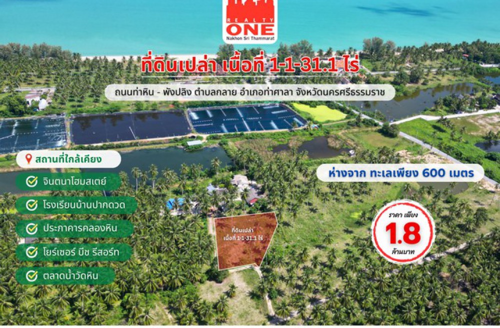 ท่าศาลา , จังหวัดนครศรีธรรมราชที่ดินเปล่า 1-1-31.1 ไร่ _ ห่างทะเลเพียง 600 เมตร