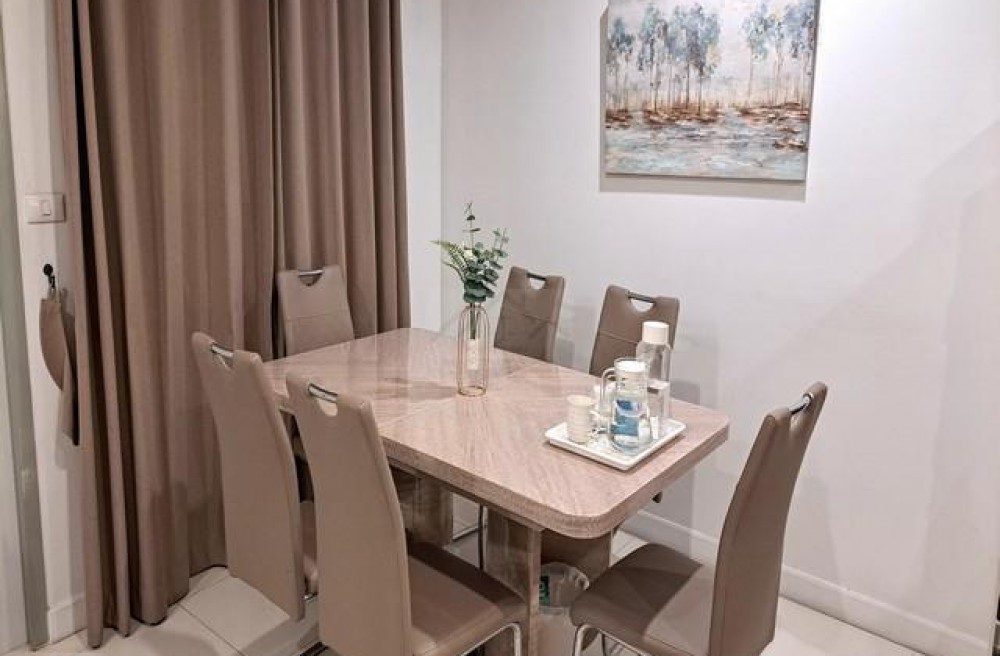 - ห้องรับแขก: SB Design โซฟาหนังแท้ 3 เมตร + โต๊ะทานข้าวท้อปหินอ่อน ยืดหดได้สั่งทำพิเศษ 230cm + เก้าอี้ 6 ตัว + ของตกแต่ง