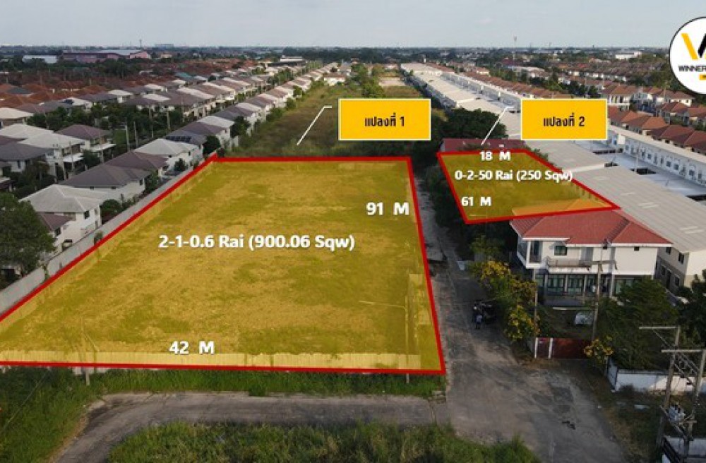 -แปลงที่ 1 ขนาด 2-1-0.6 ไร่ (900.06 ตรว=3,600.24 ตรม) กว้าง 91 X 42 M