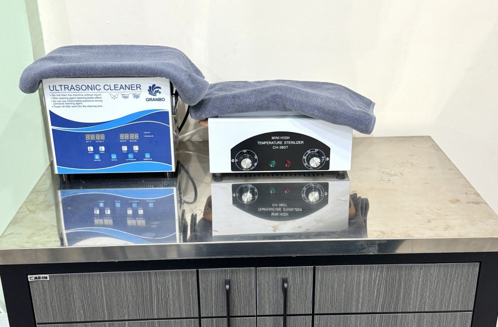 -เครื่องทำความสะอาดและฆ่าเชื้ออุปกรณ์ทำเล็บ Ultrasonic 1 ตัว, Dry Heat(Mini) 1 ตัว