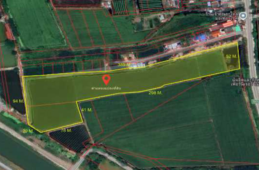 ไทรน้อย , จังหวัดนนทบุรีขายที่ดิน 14 ไร่ 3 งาน 62 ตร.ว. ซอยวัดย่านวัดต้นเชือก ติดถนนหมายเลข 5027