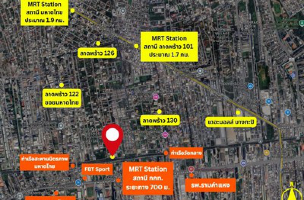ใกล้สถานีมหาดไทย(สายสีเหลือง) - ใกล้สถานี กกท. (สายสีส้ม)