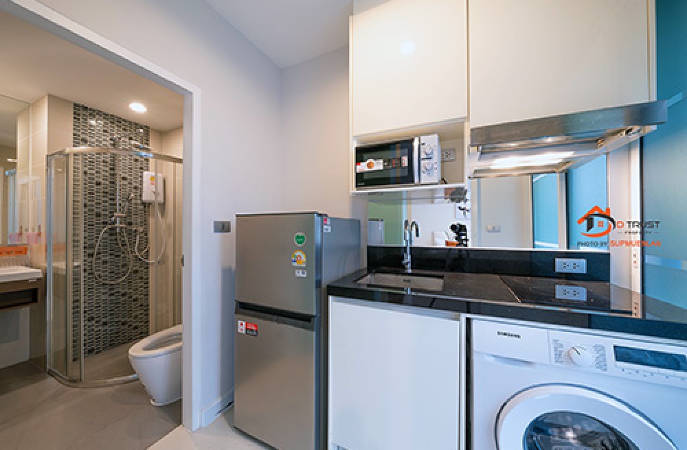 ตกแต่ง : แอร์ 1 เครื่อง / เครื่องซักผ้า / ไมโครเวฟ / ตู้เย็น 2 ประตู / เตาไฟฟ้า / ทีวี / เครื่องทำน้ำอุ่น / โซฟา / ผ้าม่าน ผ้ากรองเเสง / เตียงนอน 5 ฟุต / เฟอร์นิเจอร์บิวอิน