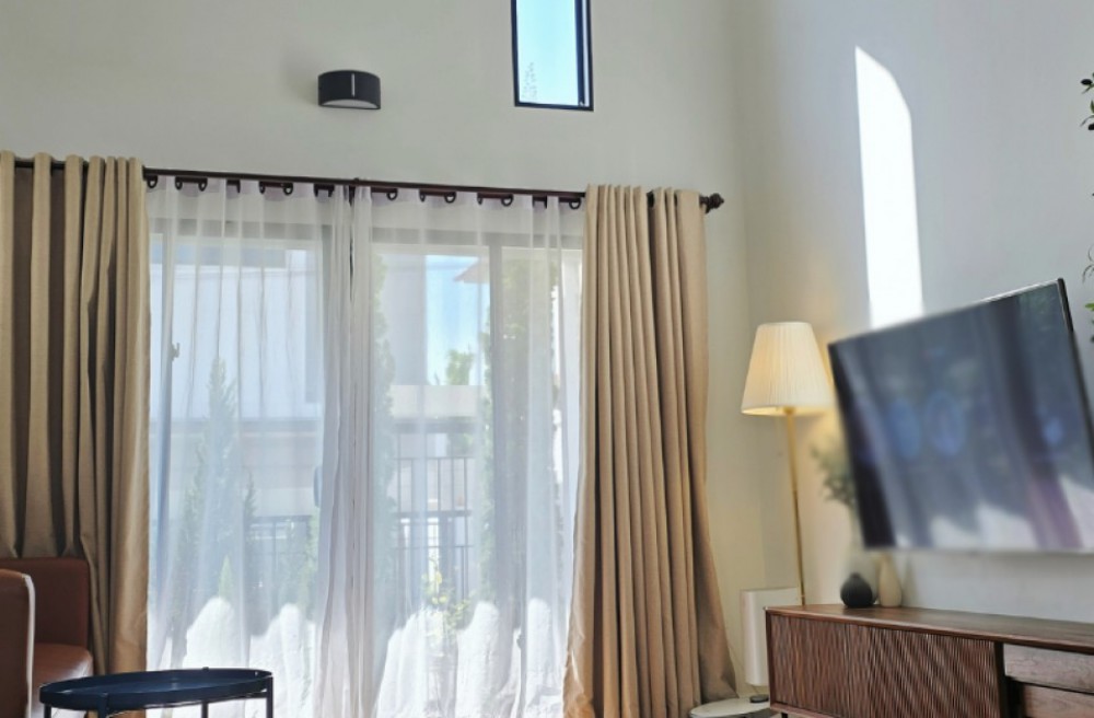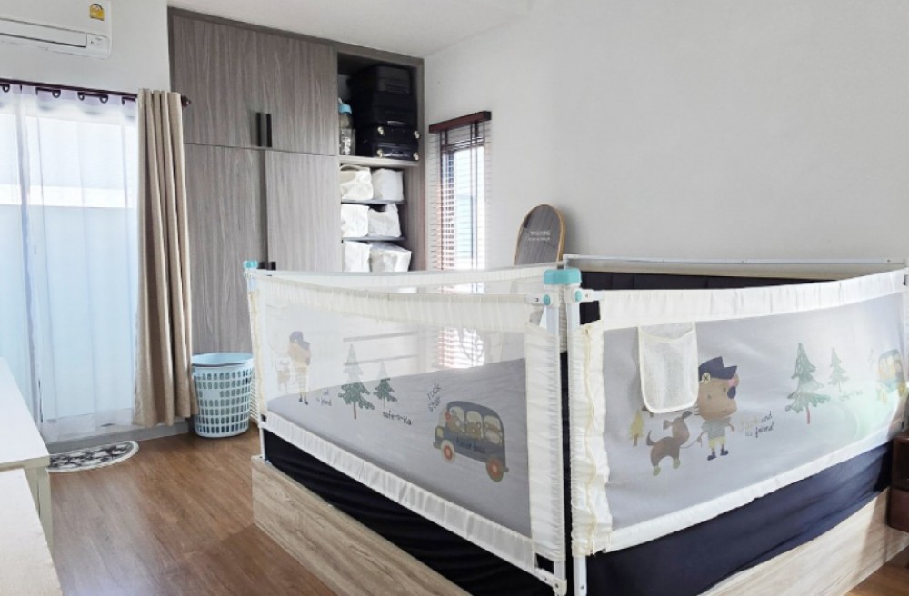 เฟอร์นิเจอร์: โซฟา ตู้เสื้อผ้า เตียง 6 ฟุต + ที่นอน ผ้าม่านทั้งหลัง + มู่ลี่ ปูพื้นกระเบื้องยาง SPC ลายไม้ สวยหรู ทนทาน