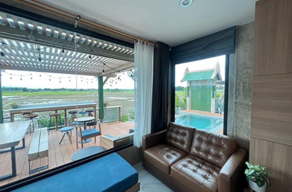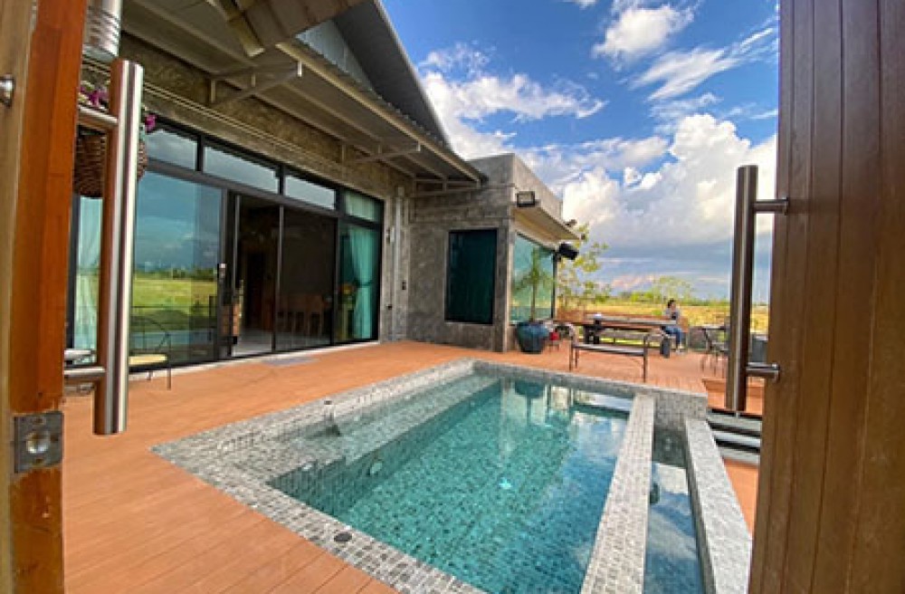 เป็นบ้านชั้นเดียว ยกระดับ ตกแต่ง ทันสมัย วิวเขา ทุ่งนา หนึ่งเดียว ในเขตอำเภอเมือง ที่สามารถสัมผัสธรรมชาติ มองเห็นทุ่งข้าวได้ตลอดปี