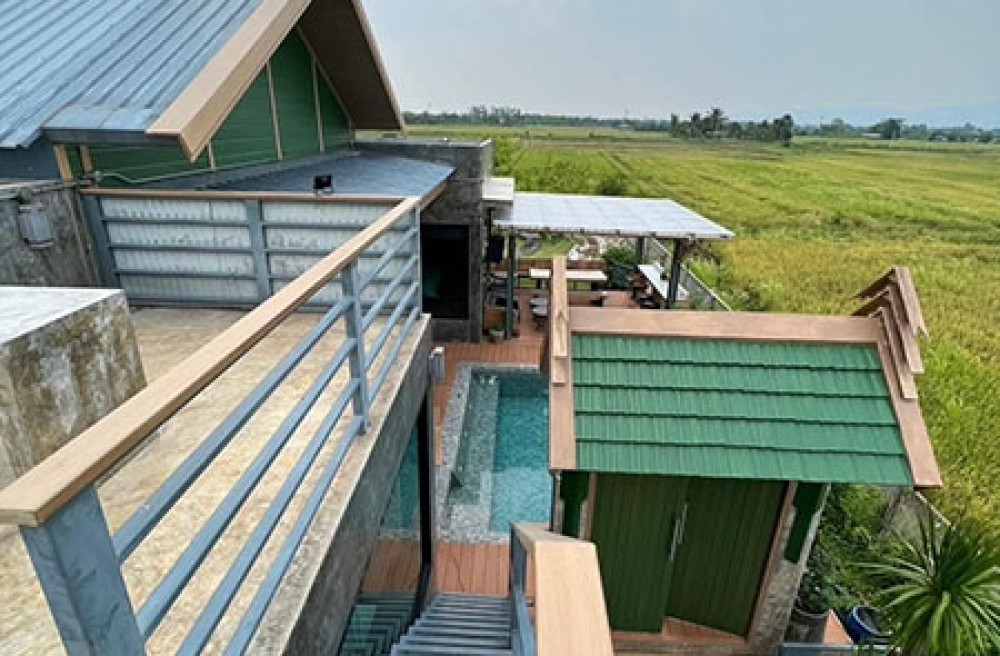 เป็นบ้านชั้นเดียว ยกระดับ ตกแต่ง ทันสมัย วิวเขา ทุ่งนา หนึ่งเดียว ในเขตอำเภอเมือง ที่สามารถสัมผัสธรรมชาติ มองเห็นทุ่งข้าวได้ตลอดปี