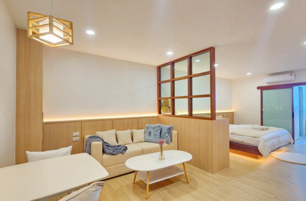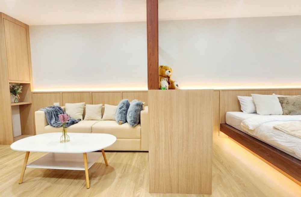 รูปแบบ 1 ห้องนอน 1 ห้องน้ำ 1 ห้องนั่งเล่น 1 ห้องครัว แยกเป็นสัดส่วน