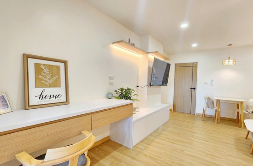 คอนโดทำเลเมืองเชียงใหม่ ห้องรีโนเวทใหม่สไตล์มินิมอล โทนขาวสะอาด สะอาด โปร่งสบาย แบ่งพื้นที่ใช้งานเป็นสัดส่วน เหมาะสำหรับอยู่อาศัยเองหรือซื้อเพื่อลงทุนปล่อยเช่า