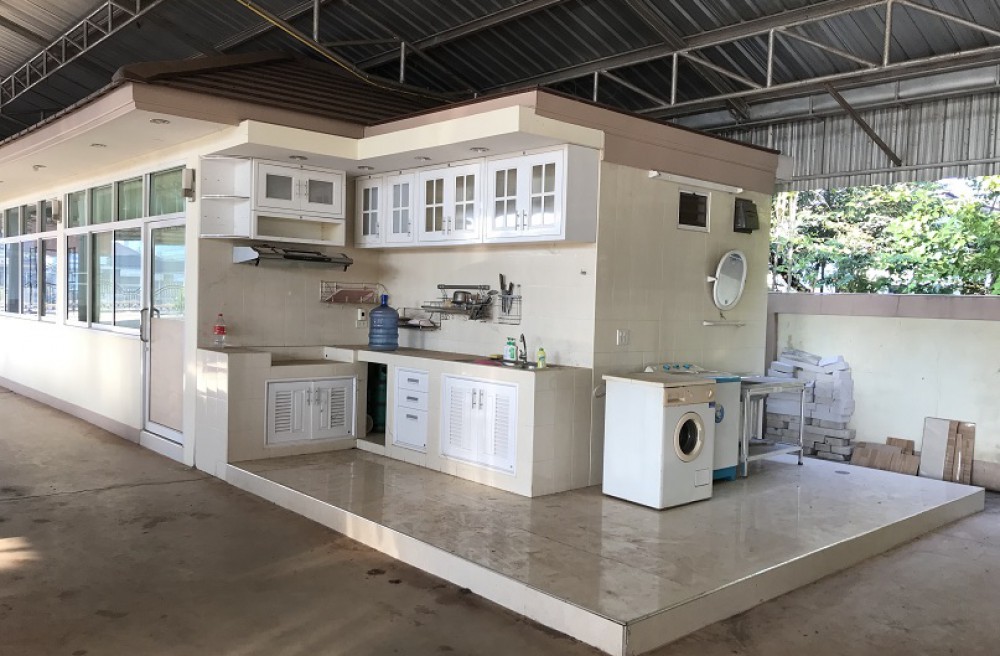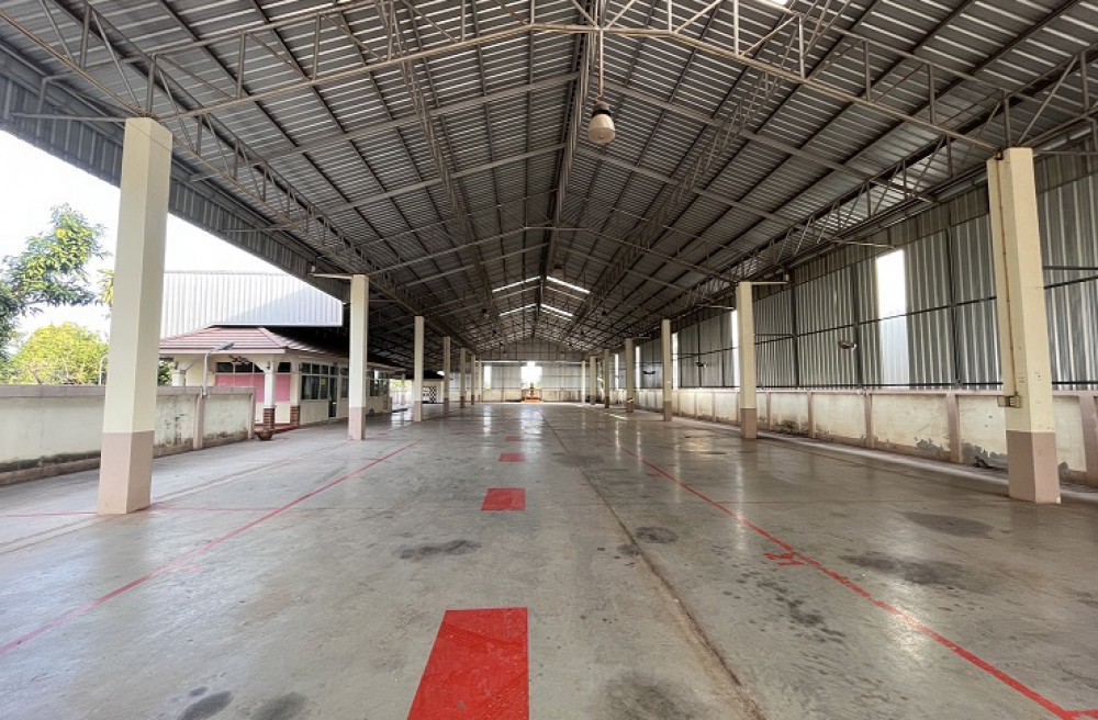 - ห้องโถงเปิดโล่งขนาดใหญ่ (โกดัง) มีหลังคา พร้อมโคมไฟส่องสว่าง มีรั้วคอนกรีตล้อมรอบตลอดทั้งพื้นที่
