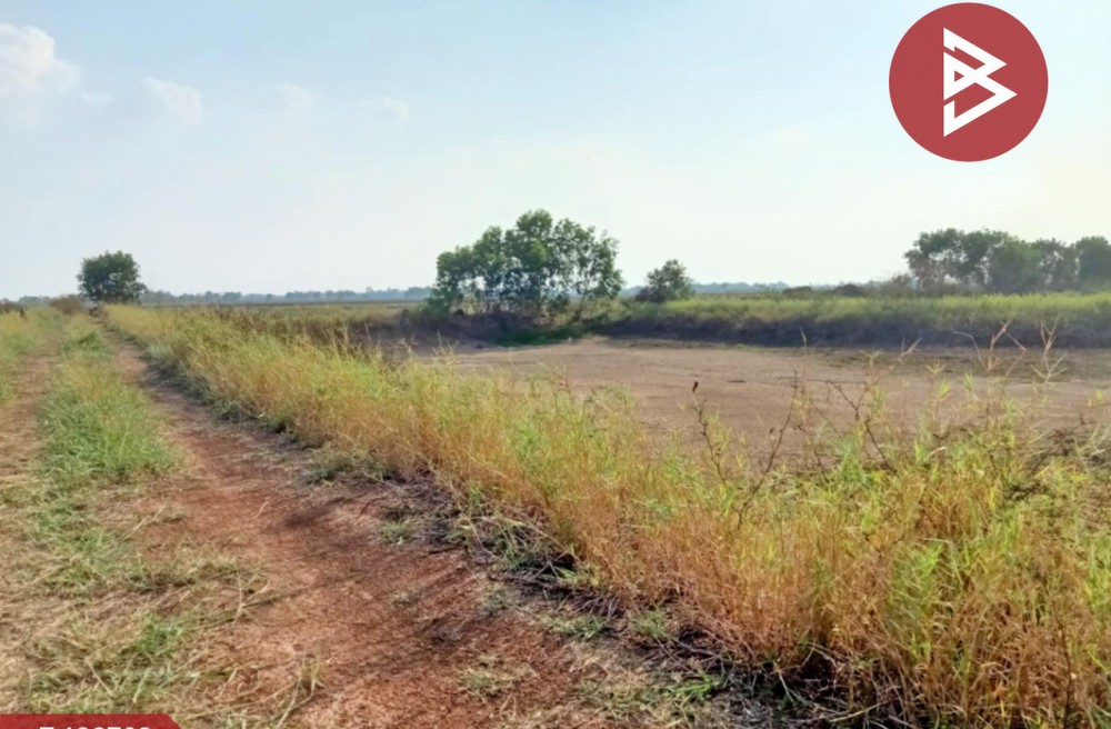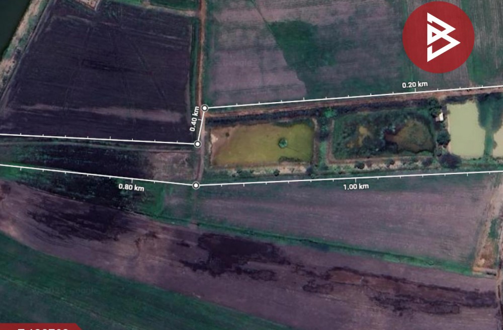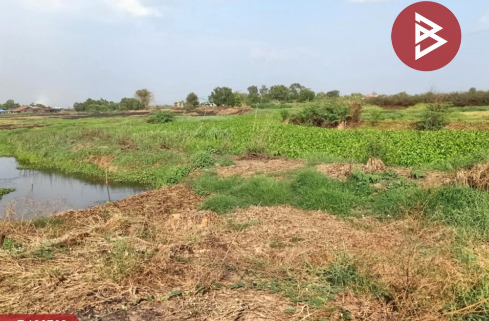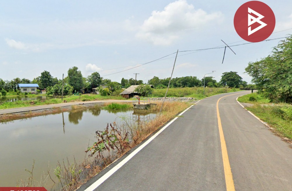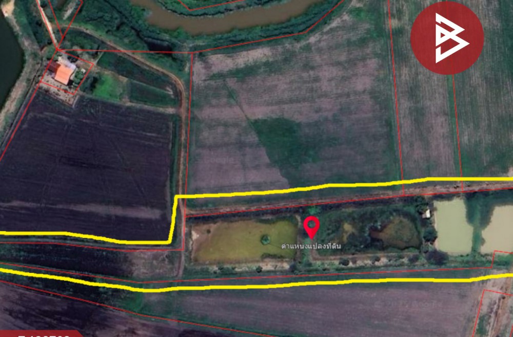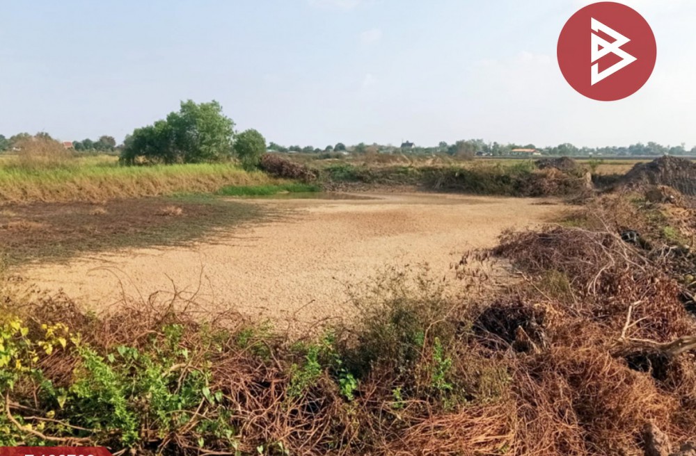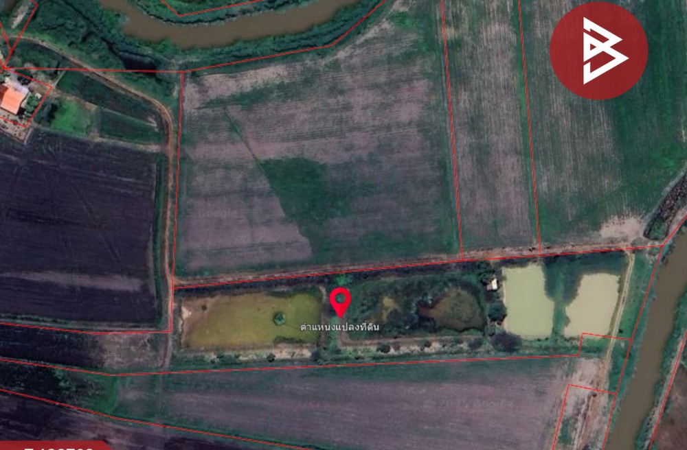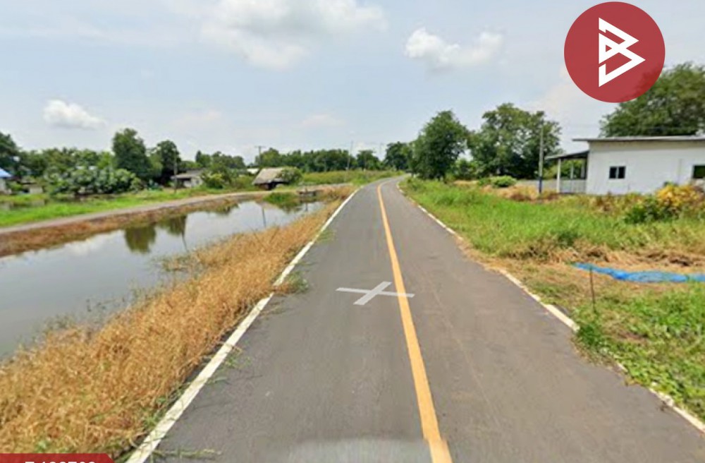 ที่ดินด้านหลังติดคลอง ทำนาและมีบ่อปลา ด้านหน้าติดถนนดำ