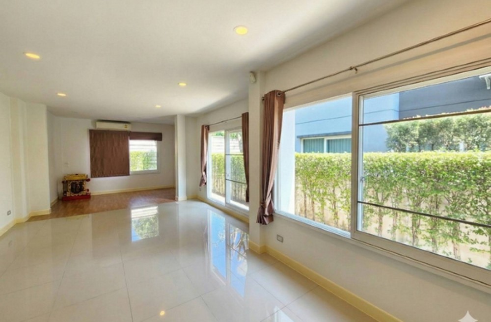 - ชั้นล่าง ปูพื้นกระเบื้องโต้ พื้นชั้นบนปูลามิเนต มีห้องนอนชั้นล่าง ผ้าม่านอย่างดี แอร์ 5 ตัว