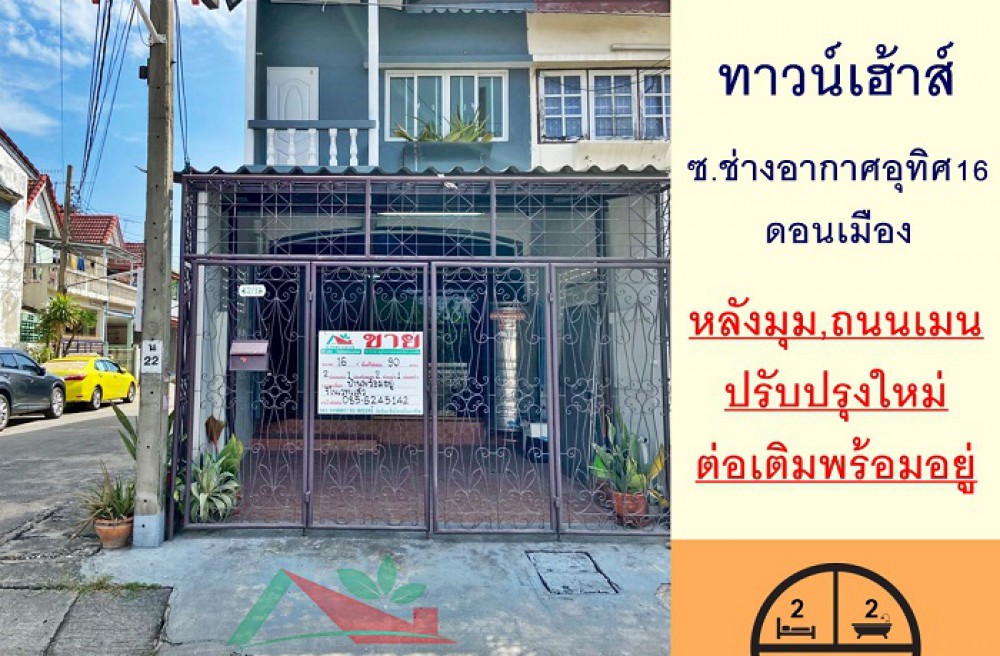 เขตดอนเมือง , จังหวัดกรุงเทพมหานครขายทาวน์เฮ้าส์ดอนเมือง 16ตรว. หลังมุม ซ.ช่างอากาศอุทิศ16 ปรับปรุงใหม่พร้อมอยู่