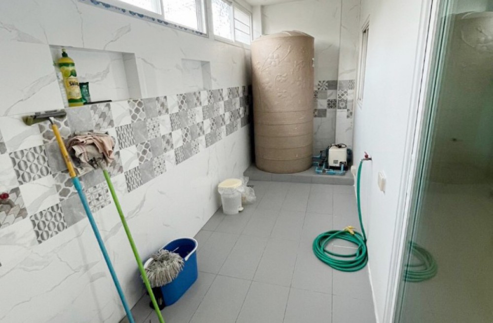 •ต่อเติมครัวพร้อมหลังคา ปูกระเบื้องพื้นและผนังอย่างดี