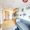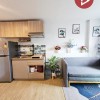 พื้นที่นั่งเล่นเปิดโล่งเชื่อมต่อกับครัวขนาดกะทัดรัด สร้างความสะดวกสบายและบรรยากาศอบอุ่นสำหรับการใช้ชีวิตประจำวัน
