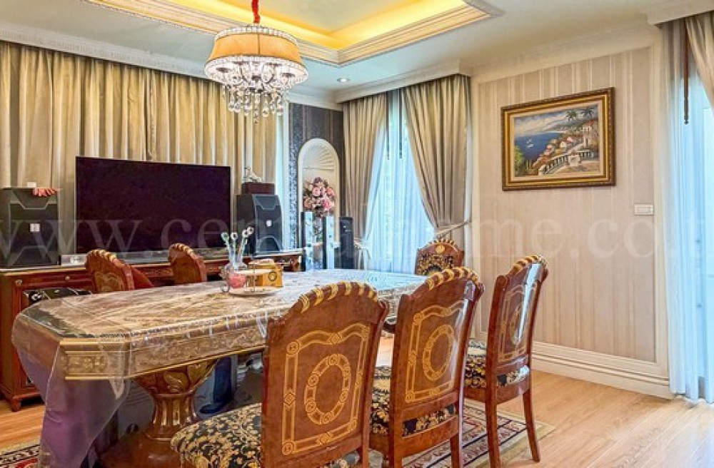 - 4 ห้องนอน, 5 ห้องน้ำ, 1 ห้องรับแขก, 1 ห้องรับประทานอาหาร, 1 ห้องครัวไทย, 1 ห้องครัวฝรั่ง, 1 ห้องแม่บ้าน, 2 ที่จอดรถ
