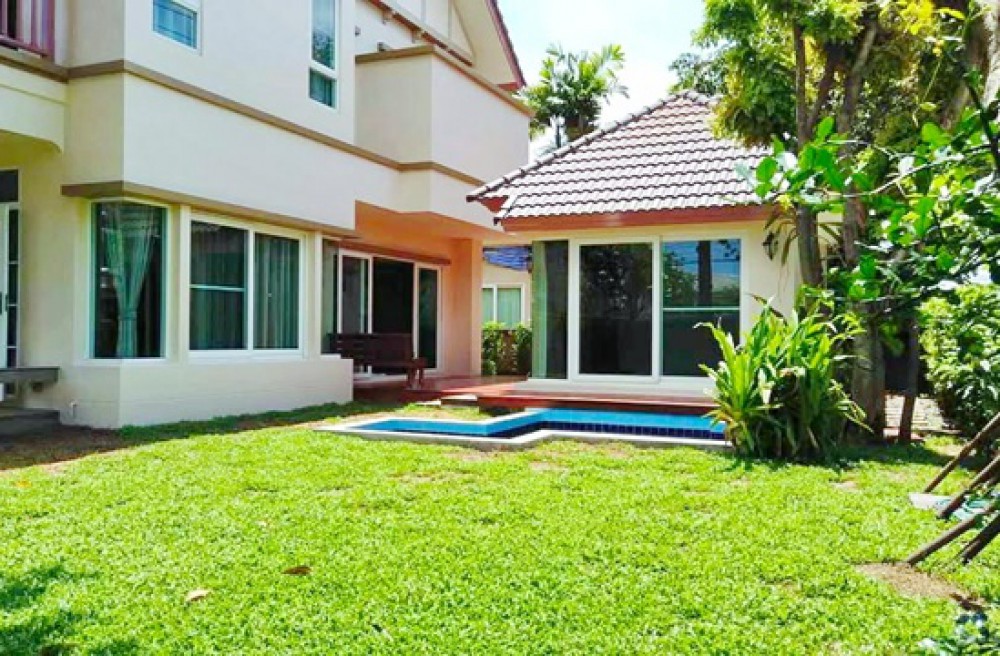 guesthouse corner lot 5bed Robinson Ratchaphruek 2.4 km. For rent 2-story detached house with 4 bath 121 sq.wa. 310 sq.m. fully furnished. Pakkret 2 Hospital 2.6 km. Prime location next to main road and park. 49,999 B-M. Singapore International School Nonthaburi 3.0 km. Suitable for residential use. Chaiyaphruek Road.