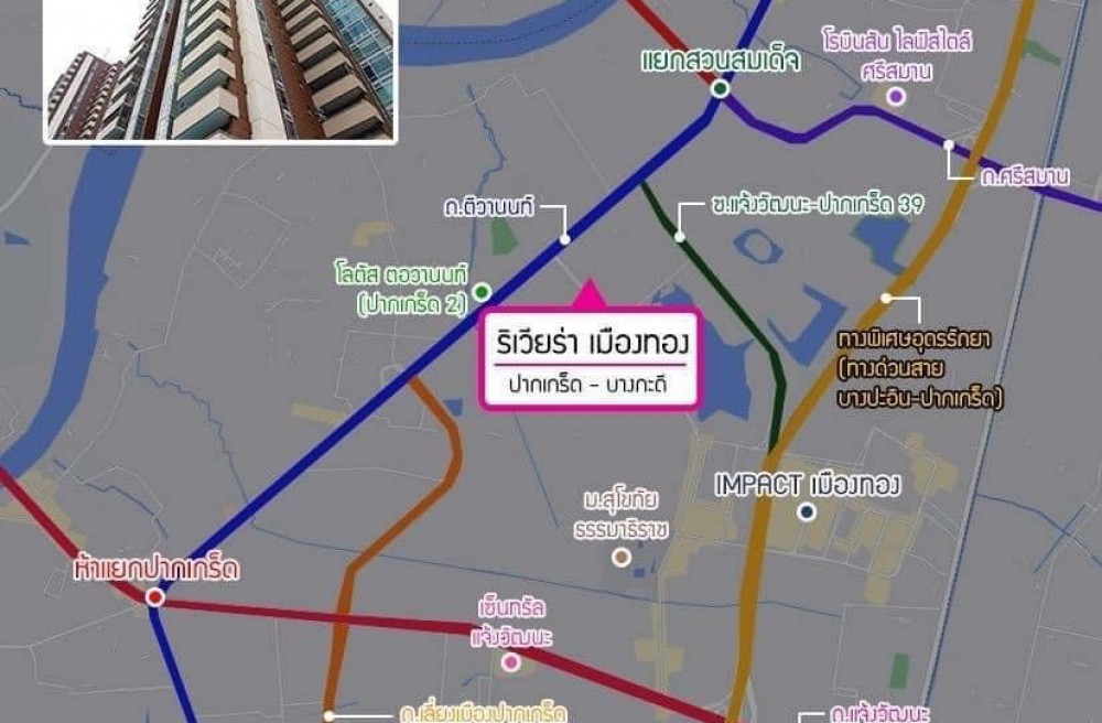 ปากเกร็ด , จังหวัดนนทบุรีคอนโด 2ห้องนอน 2ห้องน้ำ ริเวียร่า2 เมืองทองธานี เช่า