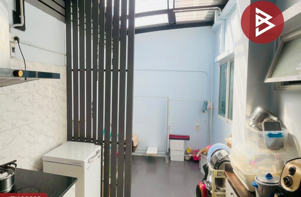 มีต่อเติมหลังบ้าน : โดยยกโครงหลังคาสูง ส่วนของหลังคาชิดกับขอบกำแพงเพื่อให้มีลมระบาย พร้อมมีชุดทำครัวทั้งเซ็ตและระบบไฟฟ้าพร้อมใช้งาน