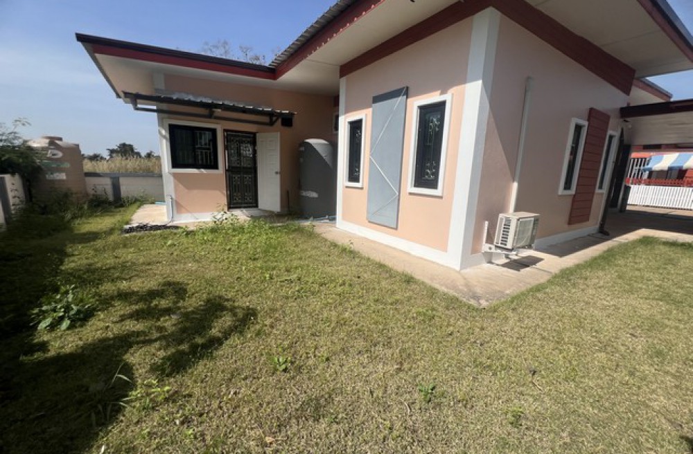 หลังบ้านมีสนามหญ้าหลังโรงจอดรถอีก นั่งกินหมูกะทะได้ นั่งข้างบ้านได้ เห็นวิวทุ่งนาลมเย็นๆค่ะ