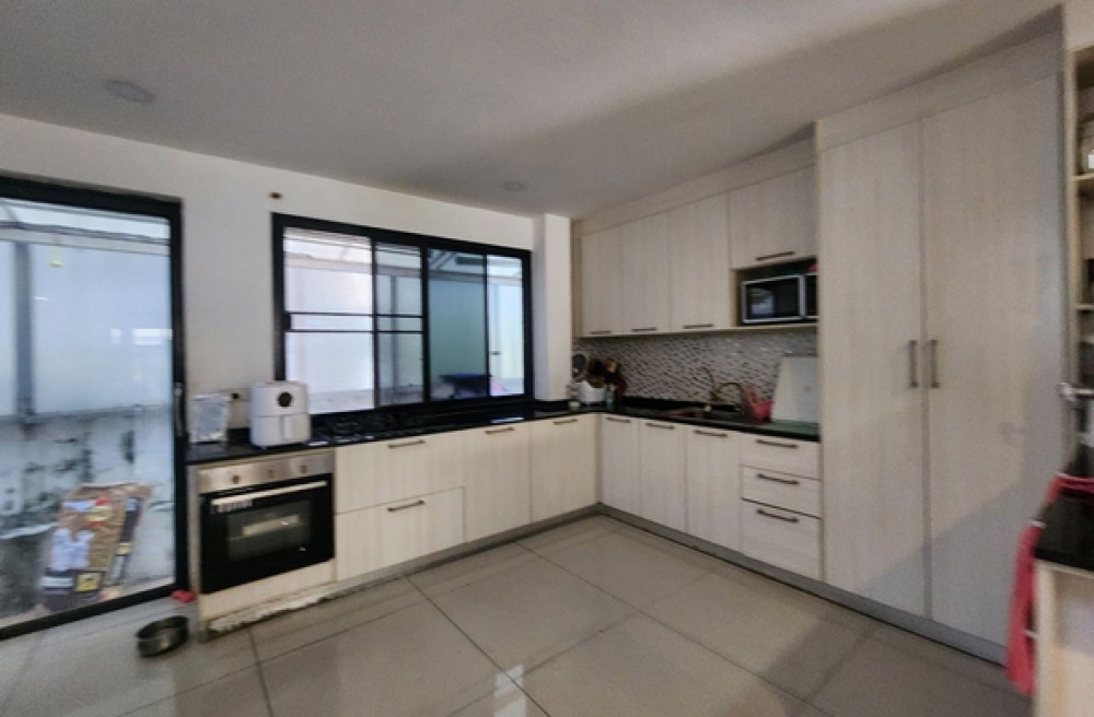 - ชั้นล่างตกแต่งพื้นกระเบื้อง พร้อมบิ้วอินเคาเตอร์ครัว ขนาดใหญ่