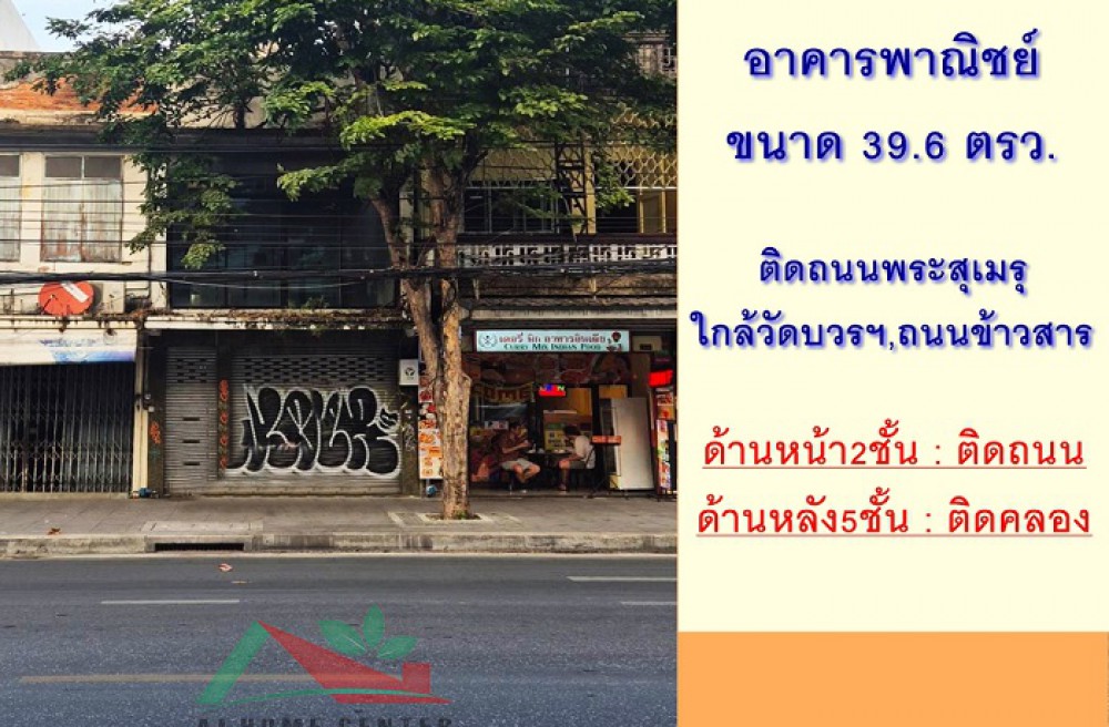 เขตพระนคร , จังหวัดกรุงเทพมหานครขายตึก5ชั้น 39.6 ตรว. ด้านหน้าติดถนนพระสุเมรุ ด้านหลังติดคลอง ใกล้ถนนข้าวสาร