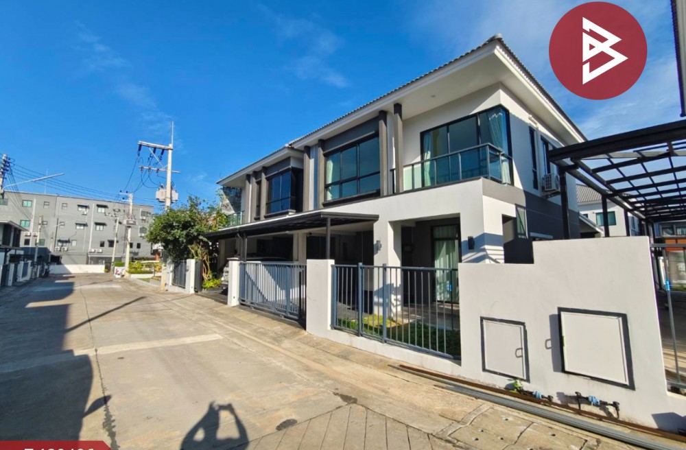 ตกแต่งพร้อมใช้งาน ต่อเติมหลังคาโรงจอดรถและหลังคาลานซักล้างแล้ว พร้อมปูหญ้ารอบบ้าน
