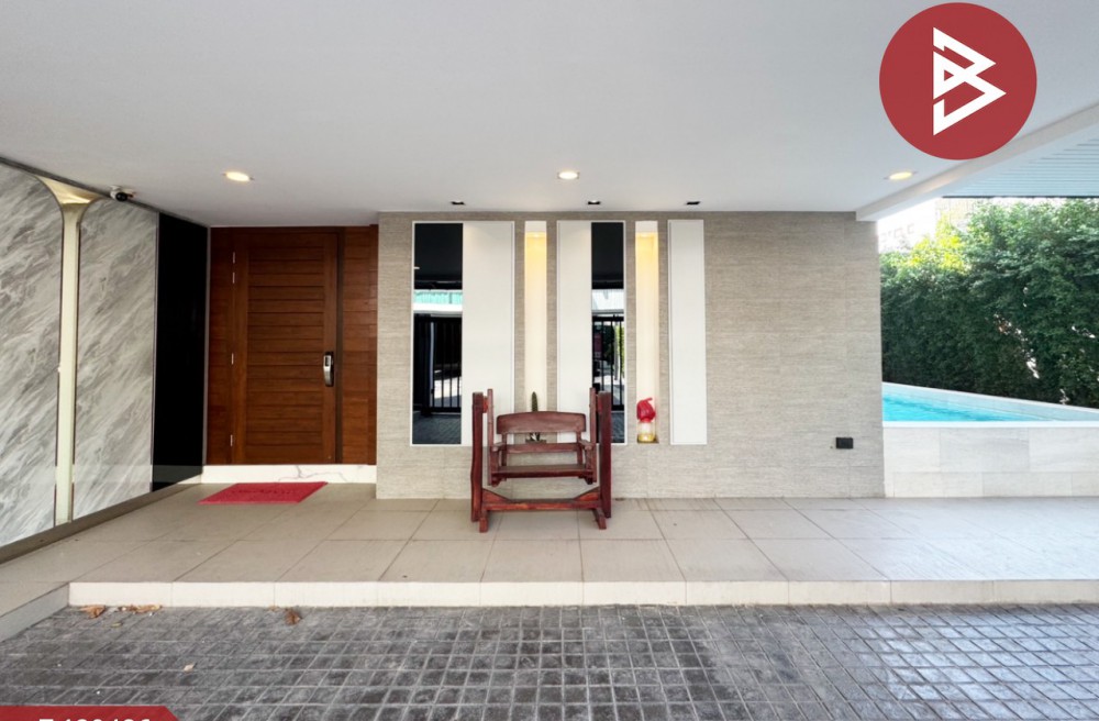 - บ้านมีการต่อเติมห้องนั่งเล่น ผนังกระจก ริมสระว่ายน้ำ